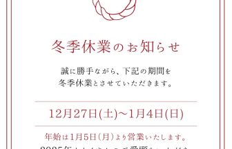 本年は格別のご愛顧を賜り厚く御礼申し上げます。 2023年12月29日(金)より 2024年1月4日(木)まで年末年始休業とさせて頂…